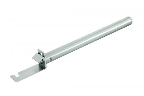 Grippers with stainless steel tubular handle. Grippers adjustable to ensure hold of the pans having edges of various dimensions with lateral notch for anchoring of the pan edge. Available in two lengths: 30 cm or 60 cm.