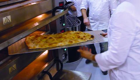 Aluminium board for the management of pizza by the meter. Grip on one side, with front milling, to facilitate both the loading and the release of the pizza in the oven.Unlike traditional wooden boards, the use of aluminium makes the product lightweight, solid, durable, hygienic and easy to clean.The preparation of the dough and the topping can be carried out directly on the peel, this is why a sturdy tool is necessary, that facilitates the sliding of the dough onto the refractory stone of the oven and that is at the same time light and easy to handle.