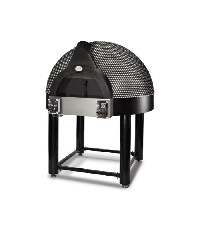 Baking surface of 110 cm. in diameter Pavesi ROTATING SINGLE BLOCK, capacity for 6/8 piazzas. Designed to provide a working tool of the highest standard but still unique, because it is strongly characterized in terms of aesthetics, almost a piece of design. User friendly, rotation speed control, cooking plate always at the ideal temperature, the revolving oven is recommended for those who must cook large quantities of pizzas as quickly as possible. All the Pavesi gas-fired ovens are supplied with an electronically managed gas burner.