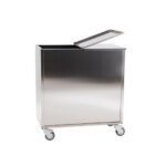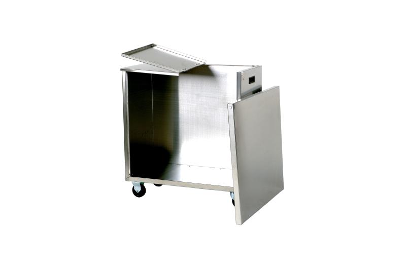 Flour carrier entirely in stainless steel with 4 wheels of 80 mm. It has a lid with two openings for easy flour collection and a bayonet pull-out front to facilitate the positioning of the sacks from the side avoiding having to lift them, and facilitating accessibility for better cleaning. This solution ideated by Gi.Metal allows holding two 25 kg sacks and perfect management of the flour. Once opened a sack you automatically wait for its finishing before opening a new one. Without contact between flour and container you avoid old flour residue. Maximum capacity 50 kg