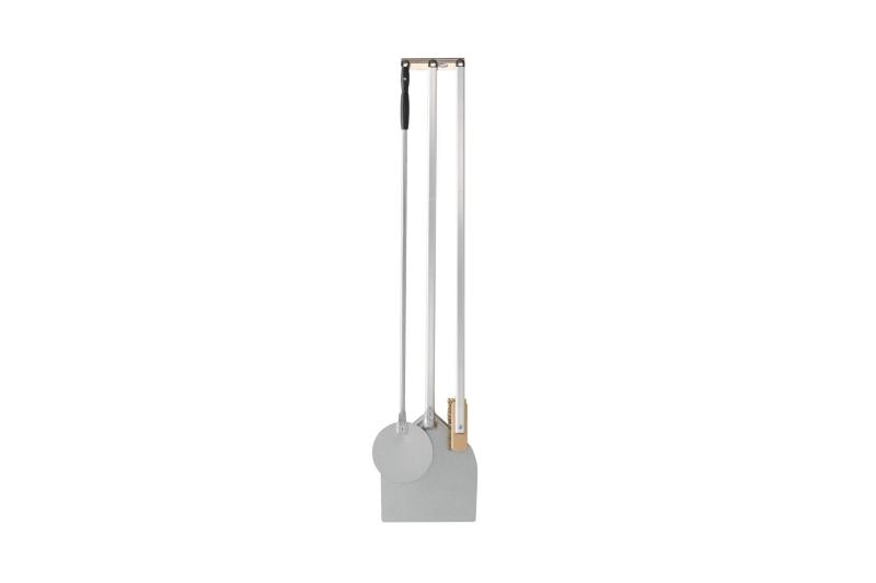 Wall-mounted  peel  rack,  3  places (peel, small peel, brush) in aluminum. Easy and practical allows hooking tools with head downwards, with fewer risks of involuntary burns. Dimensions: 21 x 7 cm.